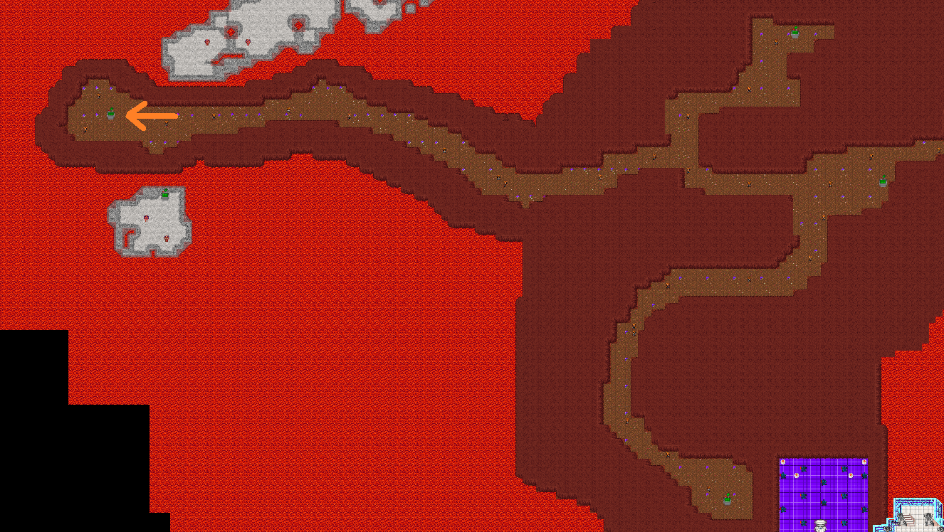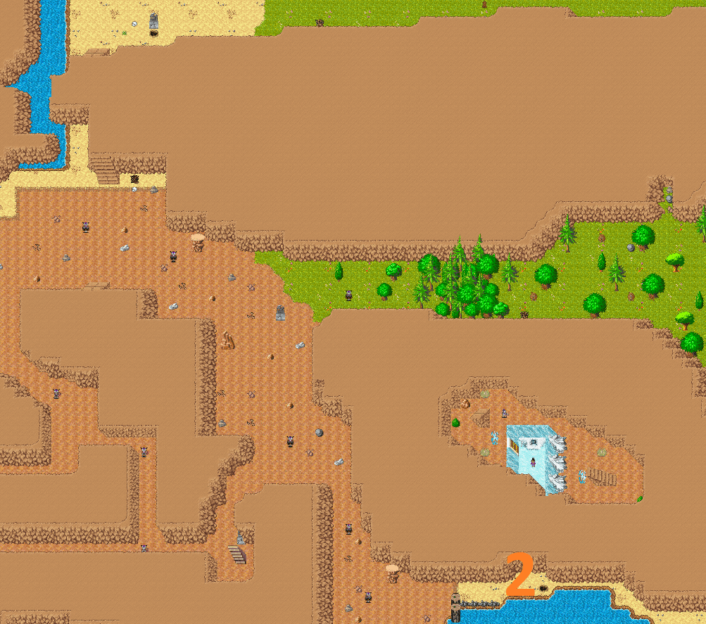 Longer route — through the rocky mountain path between Big City and Small City. Good exp spot for level 20+.